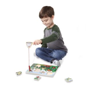 This magnetic wooden puzzle game features a garden full of attractive bugs and insects! Use the magnetic butterfly net to capture the 10 bug buddies from the game board. Then enjoy the challenge of returning them to their preferred perch!