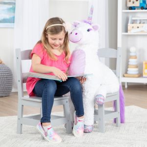 These two easy-to-assemble hardwood chairs have an 11-inch seat height that’s comfy for kids and holds up to 100 pounds! The chairs have a modern cool gray finish to fit with any home décor. and wipe clean to stay looking crisp and clean. Add them to the Melissa & Doug Table & 2 Chairs Set to make room for a foursome. or use them on their own to create a child-friendly seating nook for two! Detailed illustrated instructions make it easy to assemble with just a Phillips-head screwdriver (not included). Chairs are tested to the most stringent of children’s furniture standards.