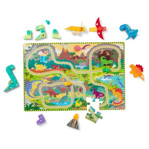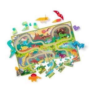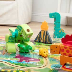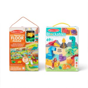 Bring the prehistoric world to life with this roar-worthy two-toy bundle! Kids can piece together a vibrant 48-piece floor puzzle and watch two wind-up dinosaurs chase each other along twisting tracks. Then. build their own dinosaurs with the 69-piece Blockables™ Dinosaur Play Set—snap wood blocks and felt pieces together to create a T-rex. stegosaurus. pterodactyl. and more. or mix and match to invent wacky new creatures. Bursting with hands-on discovery. this bundle boosts fine motor skills. problem-solving. and storytelling while keeping imaginations soaring—no screens required. A perfect pick for preschool paleontologists and dino-loving kids ages 3–7!