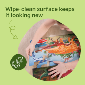 Explore dinosaur life with this 48-piece floor puzzle that forms a 3 x 2 ft prehistoric scene. The completed picture includes a variety of dinosaurs from different time periods. giving kids plenty to name. compare. and talk about. An illustrated guide and a link to online. multi-language dinosaur IDs help children learn species names and match picture details as they assemble the puzzle. As kids sort and connect the large wipe-clean pieces. they build fine motor skills. spatial awareness. focus. and simple problem-solving. Designed for ages 3 and up. this puzzle encourages storytelling. early science curiosity. and screen-free floor play. This detailed puzzle is a wonderful addition to any collection of toddler toys and is just right for birthday gifts. holiday gifts. or special occasions. Melissa and Doug kids puzzles are Montessori inspired toddler activities that foster spatial awareness and fine motor skills as they bring their imagination to life! For even more meaningful developmental play. combine this with other Melissa and Doug pretend play toys for kids that love preschool learning activities like jigsaw puzzles. & games like the Secret Decoder Deluxe Activity Set & the Hungry Pelican. for endless learning adventures. For 35+ years. Melissa and Doug has crafted imaginative preschool toys and durable wooden toys built to nurture childhood wonder. with everything from a life-sized grocery store playset to a play kitchen playset and play food to serve plush toys & puppets. to costumes. arts & crafts. and road trip activities for kids. It’s the kind of kid-powered play that builds independence and confidence!