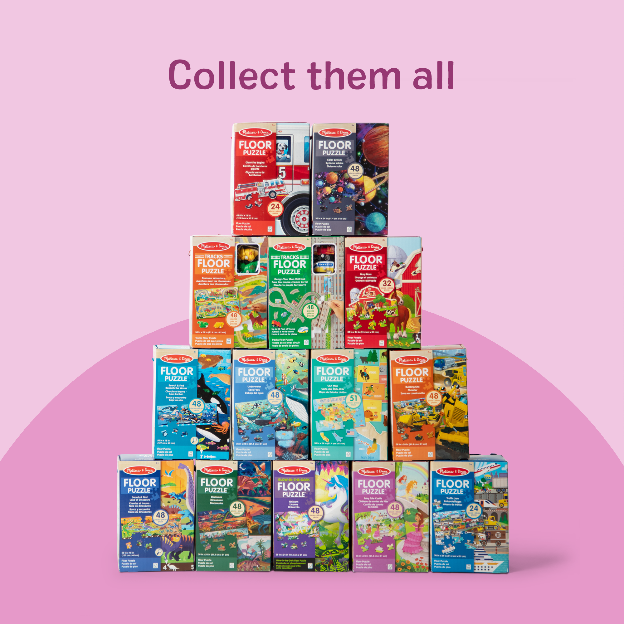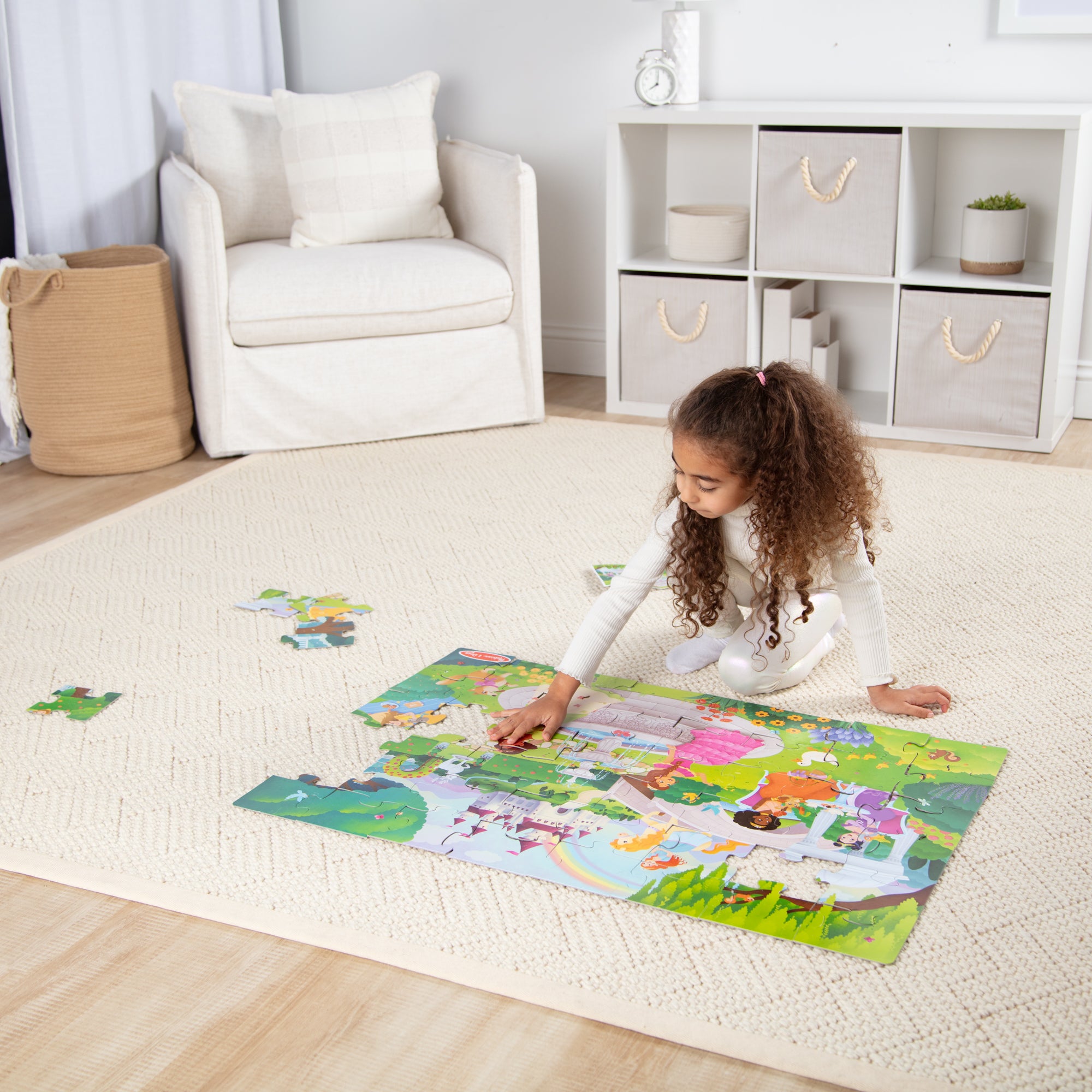 Dive into a fairy tale world with this 48-piece floor puzzle that forms a 3 x 2 ft castle scene when complete. The detailed picture includes a rainbow. fountain. flowers. princesses. and friendly animals kids can point to. name. and build stories around. An illustrated guide is included to help children match colors. shapes. and picture elements as they assemble the pieces on their own. The large. wipe-clean pieces are sized for young hands and designed for repeated storytelling and floor play. This detailed puzzle is a wonderful addition to any collection of toddler toys and is just right for birthday gifts. holiday gifts. or special occasions. Melissa and Doug kids puzzles are Montessori inspired toddler activities that foster spatial awareness and fine motor skills as they bring their imagination to life! For even more meaningful developmental play. combine this with other Melissa and Doug pretend play toys for kids that love preschool learning activities like jigsaw puzzles. & games like the Secret Decoder Deluxe Activity Set & the Hungry Pelican. for endless learning adventures. For 35+ years. Melissa and Doug has crafted imaginative preschool toys and durable wooden toys built to nurture childhood wonder. with everything from a life-sized grocery store playset to a play kitchen playset and play food to serve plush toys & puppets. to costumes. arts & crafts. and road trip activities for kids. It’s the kind of kid-powered play that builds independence and confidence!