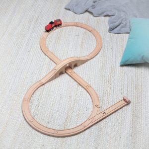 All aboard! This Figure 8 Train Set for kids comes with 22 pieces! It includes 20 pieces of wooden track. a train engine attached to an adorable a coal car. plus an elevated railroad bridge. It’s a durable train set. made out of quality solid wood. and runs totally on kid power! No batteries required. The train is lightweight and made just right for little hands to push it forward or backward. and all around the track. It’s perfect for practicing large motor skills and inspiring imaginative play. The wooden pieces are easy to take apart and put back together again. so kids can enjoy making their figure 8 track. It’s also compatible with popular wooden railway systems. From classic wooden toys to crafts. pretend play. and games. Melissa & Doug products provide a launch pad to ignite imagination and a sense of wonder in all children so they can discover themselves. their passions. and their purpose. Where will your imagination take you today?