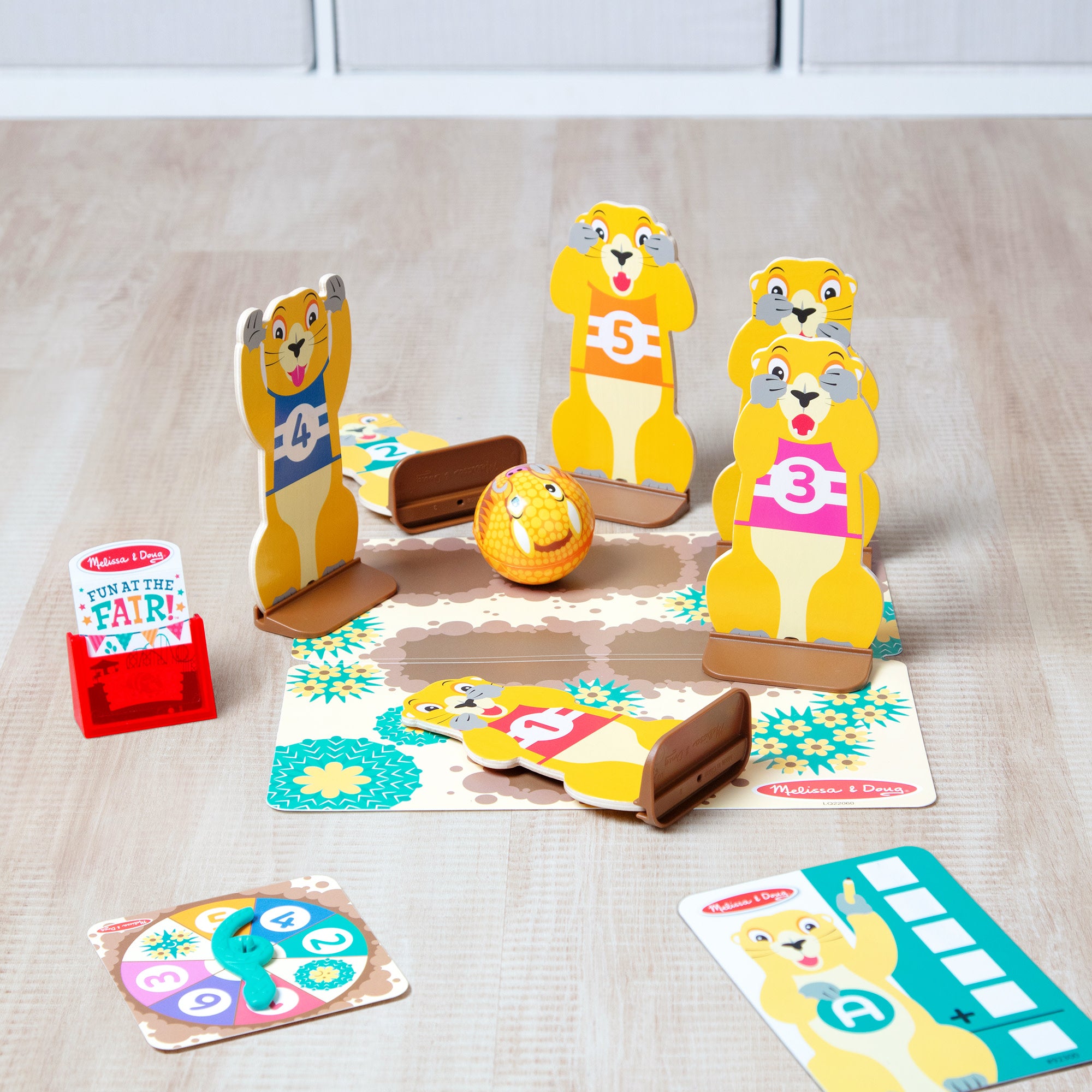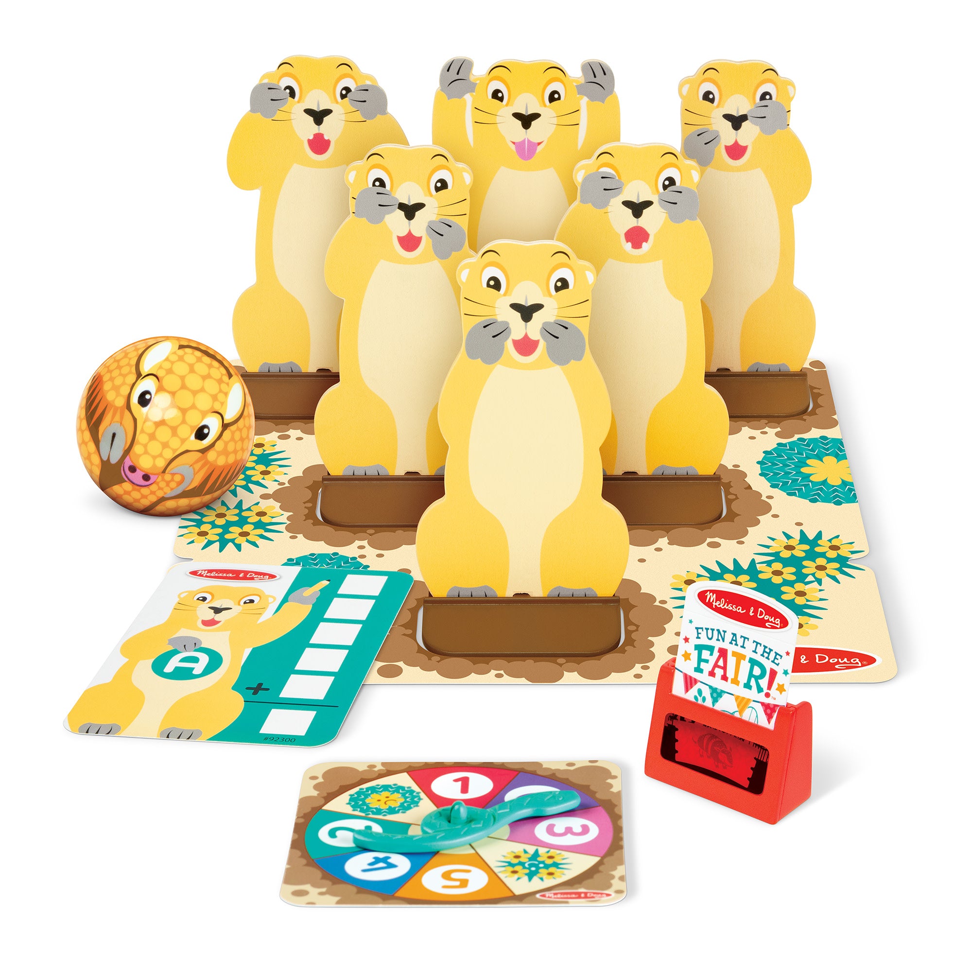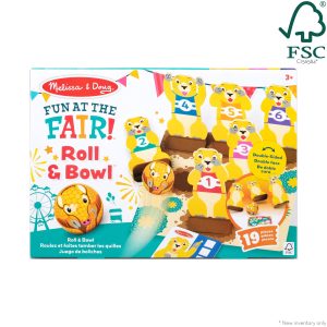 Step right up and turn any day into Fair Day! Experience the excitement of fairground bowling games at home! Set up the Melissa & Doug Fun at the Fair! Roll & Bowl wooden prairie dog pins and use the adorable armadillo bowling ball to try to knock them down. Start game play by inserting the secret-reveal player card ticket in the card reader. Illustrated instructions show several ways for one or two players (or teams!) to set up. keep score. and play. Pieces all store in the handy storage bag. Designed to amuse. surprise. and challenge kids three and older to keep them laughing and learning through play. Roll & Bowl is an engaging. hands-on way to introduce counting. early math skills. and cause-and-effect. and to encourage fine and gross motor skills. From games of skill and chance to innovative carnival-inspired play sets. the Melissa & Doug Fun at the Fair! collection brings home all the fun of a day at the fair! This product is certified by the Forest Stewardship Council. FSC certification ensures that products come from responsibly managed forests that provide environmental. social. and economic benefits. and that forests are protected for future generations. Please note that FSC certification applies to new inventory only (FSC C156584)