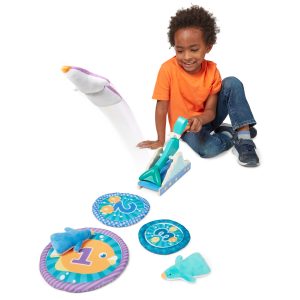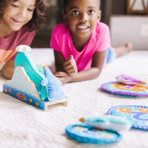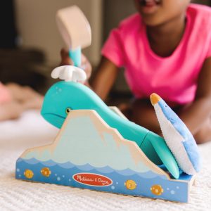 Step right up and turn any day into Fair Day! The Melissa & Doug Fun at the Fair!™ Penguin Launch lets kids three and older experience the excitement of the classic fairground aim-and-launch target games at home! Start game play by inserting the secret-reveal player card ticket in the card reader in the back of the wooden whale launcher. Scatter the three fabric targets. balance a plush penguin on the whale’s tail. take aim. and bang the spout with the wooden mallet to send the penguin soaring! Illustrated instructions show several ways for one or two players to set up. keep score. and play. Pieces store in the handy storage bag. Designed to amuse. surprise. and challenge kids three and older to keep them laughing and learning through play. Penguin Launch is an engaging. hands-on way to introduce numbers. matching. colors. and cause-and-effect. and to encourage fine and gross motor skills. From games of skill and chance to innovative carnival-inspired play sets. the Melissa & Doug Fun at the Fair!™ collection brings home all the fun of a day at the fair! This product is certified by the Forest Stewardship Council. FSC certification ensures that products come from responsibly managed forests that provide environmental. social. and economic benefits. and that forests are protected for future generations. Please note that FSC certification applies to new inventory only (FSC C156584)