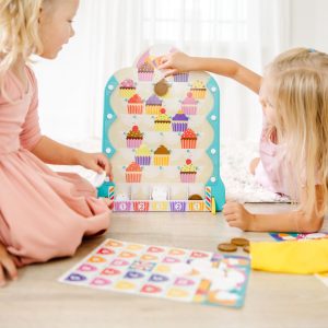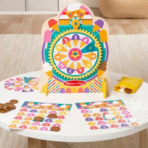 Step right up and turn any day into Fair Day! The double-sided Melissa & Doug Fun at the Fair!™ Roulette & Plinko spinner is a wooden tabletop version of two classic fair games of chance with a twist – this game is designed to build fine motor and early-learning skills! Start game play by inserting the secret-reveal player card ticket into the base. Drop disks through the plinko maze or spin the clicking roulette wheel for bingo and other color- and number-matching games. The set includes two double-sided roulette wheel cards for lots of game variations (including addition and subtraction options!). Fun for one or two players. Designed to amuse. surprise. and challenge kids three and older to keep them laughing and learning through play. Roulette & Plinko is an engaging. hands-on way to introduce colors. counting. and early math skills. and to encourage fine motor skills. From games of skill and chance to innovative carnival-inspired play sets. the Melissa & Doug Fun at the Fair!™ collection brings home all the fun of a day at the fair! This product is certified by the Forest Stewardship Council. FSC certification ensures that products come from responsibly managed forests that provide environmental. social. and economic benefits. and that forests are protected for future generations. Please note that FSC certification applies to new inventory only (FSC C156584)