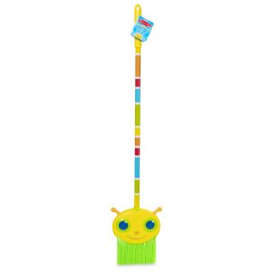 Sweeping up won’t bug kids at all when Giddy Buggy from Sunny Patch helps out! This sturdy. kid-sized broom features the always happy bug on a durable molded plastic base that securely holds soft bristles. The wooden shaft has bright and bold colorful stripes. Hang from the built-in loop in the easy-to-grip handle to store conveniently between clean sweeps!