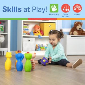 This preschool-friendly bowling set has soft plastic components that are easy to lift. easy to maneuver. and so much fun to knock down! Six unique character pins feature bright colors. raised textures. and sweet facial expressions to encourage little bowlers. Set them up indoors and out–young children will have a blast finding new ways to knock them down! With bright colors. textures. and adorable facial expressions. these endearing toys are sure to strike big at playtime. Melissa & Doug K’s Kids toys nurture early childhood development in three key skill areas: physical. cognitive. and social. With interactive designs and multisensory features. K’s Kids promotes constructive play and effortless learning. keeping interest high and new skills flourishing throughout the baby and toddler years!