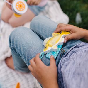 Explore the outdoor experience of fishing with the 21-piece Melissa & Doug Let’s Explore™ Fishing Play Set! Grab the two wooden fishing rods. bait the hooks with pretend worms. then hook and scoop up the six wooden fish! A reversible play mat lets young anglers choose a winter or summer experience. The illustrated fishing guide helps identify fish types. explains fishing basics. and includes fun games. Everything stores in the tackle box for quick and easy cleanup. Let’s Explore™ encourages kids three and older to connect with the natural world through imaginative play! Discover the joy of outdoor adventures that instill curiosity and confidence while inspiring kids to say. Let’s Explore™! This product is certified by the Forest Stewardship Council. FSC certification ensures that products come from responsibly managed forests that provide environmental. social. and economic benefits. and that forests are protected for future generations. Please note that FSC certification applies to new inventory only (FSC C156584)