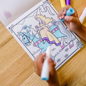 Our amazing Magicolor technology lets kids pick a marker. fill a scene. and see colors magically appear on the page–all completely mess-free! The four included markers have ink that’s invisible anywhere else but creates instant color on the 18 pages of scenes featuring castles. carriages. royal balls. and more. As a bonus. the spiral-bound book’s all-inclusive format comes with handy storage for the markers. making it great for travel! This product is certified by the Forest Stewardship Council. FSC certification ensures that products come from responsibly managed forests that provide environmental. social. and economic benefits. and that forests are protected for future generations. Please note that FSC certification applies to new inventory only (FSC C156584).
