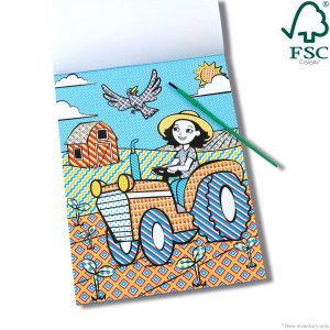 This special all-inclusive art pad is perfect for the beginning painter! With a cup of water and the included paintbrush. kids can get instant rewards–with no messy paint spills! Simply remove a page from the pad. dip the paintbrush into a container of water. and use the damp brush to blend a patterned area. As kids brush. the colors in the pattern will blend together to create a single paint color! Includes 24 cool scenes showcasing kid-favorite vehicles. This product is certified by the Forest Stewardship Council. FSC certification ensures that products come from responsibly managed forests that provide environmental. social. and economic benefits. and that forests are protected for future generations. Please note that FSC certification applies to new inventory only (FSC C156584)