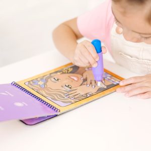 No-mess painting for kids! This exciting paint-with-water coloring book includes four reusable pages and a refillable water pen. Simply fill the pen with water and color in each scene–details and vibrant color appear with every stroke! Then let the pages dry to erase the pictures and fill them out again and again. This makeover-themed book includes four scenes of young ladies with beautiful makeup and accessories to color. plus search-and-find activities for each scene. The chunky-sized water pen is easy for kids to hold and stores neatly right in the front cover. so Water Wow! makes an ideal travel activity book and travel toy. This product is certified by the Forest Stewardship Council. FSC certification ensures that products come from responsibly managed forests that provide environmental. social. and economic benefits. and that forests are protected for future generations. Please note that FSC certification applies to new inventory only (FSC C156584)