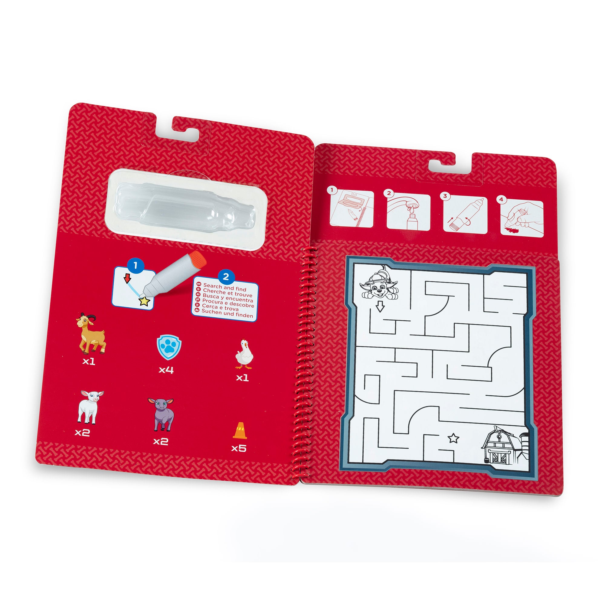 This exciting and reusable activity book features scenes with Marshall and friends from PAW Patrol on four reusable Water Wow! boards! Pages in the spiral-bound book are white when dry. and reveal colors. pictures. and letters when wet. Let the pages dry to erase. then color with water again and again! Search-and-find activities are included with each scene. The chunky-sized water pen is easy to fill. easy for small hands to grasp. and stores in the activity pad- making it a terrific travel toy. PAW Patrol is always ready to help. inspiring preschoolers with a blend of teamwork. adventure. and humor as they develop social. emotional. and developmental skills through play.
