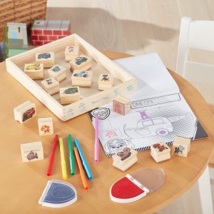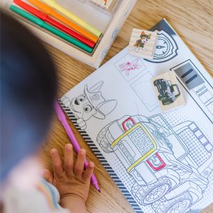 The PAW Patrol™ pups are ready to go. go. go wherever imagination leads! Mix and match wooden-handled pup and vehicle stamps and color with markers to create countless PAW Patrol™ adventures! Eight large vehicle stamps. eight medium pup stamps. two washable ink pads. 6 colorful markers. and a 12-page activity pad all store in a sturdy wooden tray for easy cleanup. PAW Patrol™ is always ready to help. inspiring preschoolers with a blend of teamwork. adventure. and humor as they develop social. emotional. and developmental skills through play.