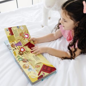 Monkeys can’t stop jumping and kids can’t stop popping! Poke the irresistible click-to-count buttons to hear satisfying clicks and pops as you count all the little monkeys! This sturdy 20-page interactive board book invites kids to pop along as they count all the little monkeys jumping on—and falling off—the bed! Poke-a-Dot® books help encourage language development. counting. and fine motor skills. Patented Pop-a-Tronic technology lets kids discover different popping sounds by poking the dots from the front or the back. with pages raised or flat! This product is certified by the Forest Stewardship Council. FSC certification ensures that products come from responsibly managed forests that provide environmental. social. and economic benefits. and that forests are protected for future generations. Please note that FSC certification applies to new inventory only (FSC C156584)