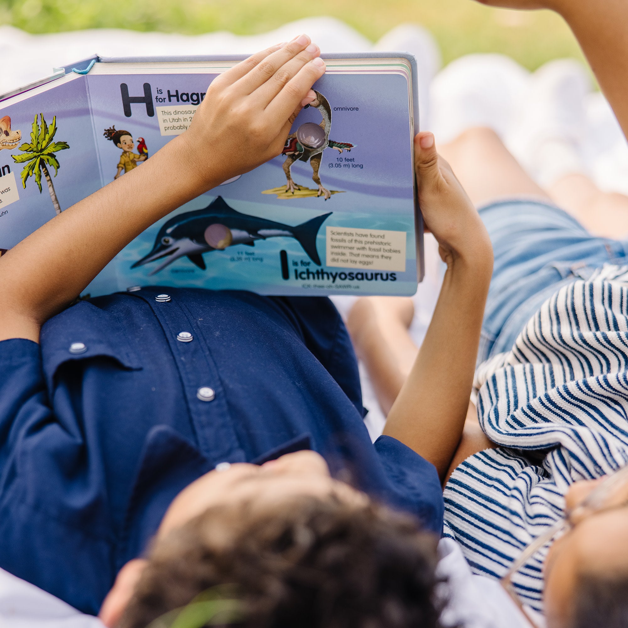 Get ready for some DINO-mite fun! Poke the irresistible click-to-count buttons to hear satisfying clicks and pops as you learn about dinosaurs from A to Z! This sturdy 20-page interactive board book invites kids to pop along as they discover the amazing world of dinosaurs and learn fun facts along the way. Poke-a-Dot® books help encourage language development. counting. and fine motor skills. Patented Pop-a-Tronic™ technology lets kids discover different popping sounds by poking the dots from the front or the back. with pages raised or flat! This product is certified by the Forest Stewardship Council. FSC certification ensures that products come from responsibly managed forests that provide environmental. social. and economic benefits. and that forests are protected for future generations. Please note that FSC certification applies to new inventory only (FSC C156584)