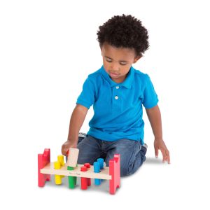 Pound the eight colorful wooden pegs into the wooden frame. then flip it over to repeat the activity again and again! Included are a wooden hammer and four pairs of pegs–great for color matching. This product is certified by the Forest Stewardship Council. FSC certification ensures that products come from responsibly managed forests that provide environmental. social. and economic benefits. and that forests are protected for future generations. Please note that FSC certification applies to new inventory only (FSC C156584)