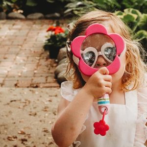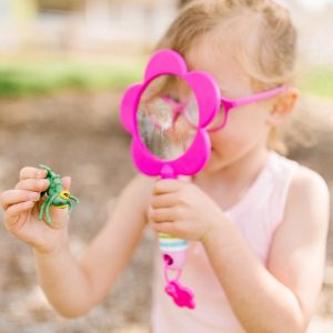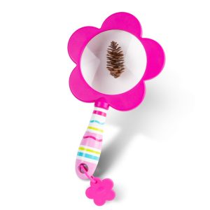 Make smiles twice as big with this bright and sturdy magnifying glass. Interest and delight in the backyard environment is sure to bloom when everything can be seen in detail! The sweet and bright design adds an adorable twist to a classic tool that helps develop observation skills and encourages kids to get up and get playing.
