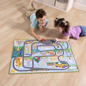 Piece together playtime with this global racetrack puzzle with built-in tracks for wind-up vehicles (no batteries required)! The 48-piece cardboard jigsaw floor puzzle features landmarks from around the world. including Niagara Falls. Big Ben. Mt. Fuji. the Sydney Opera House. and more; a key on the storage box identifies them all! Two wind-up racecars fit into the twisting and turning track on the completed puzzle; wind them up and watch them zoom! When kids work on floor puzzles. they are fine-tuning their gross motor skills. improving their hand-eye coordination. and strengthening their problem-solving skills. This high-quality Melissa & Doug puzzle and racing game makes an exceptional gift for preschoolers and school-aged kids for hands-on. screen-free play. This product is certified by the Forest Stewardship Council. FSC certification ensures that products come from responsibly managed forests that provide environmental. social. and economic benefits. and that forests are protected for future generations. Please note that FSC certification applies to new inventory only (FSC C156584).