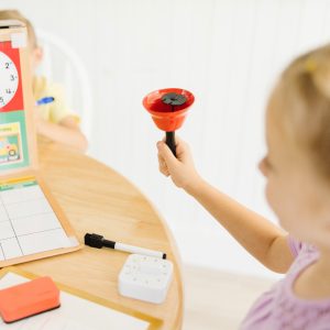 Open the box and the school day begins! With a drop-down teacher desk on one side and a student desk on the other. this innovative set allows kids to realistically play both roles! The exciting array of supplies–including 2 double-sided write-on. wipe-off boards. 2 dry-erase markers. 9 reusable activity cards. 12 pattern blocks. 150 reusable stickers. a bell. timer. pointer. and lots more–enables kids to explore a favorite activity and continue learning even out of the classroom! This product is certified by the Forest Stewardship Council. FSC certification ensures that products come from responsibly managed forests that provide environmental. social. and economic benefits. and that forests are protected for future generations. Please note that FSC certification applies to new inventory only (FSC C156584)