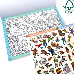 This fun pad is a seek-and-find game. a coloring pad. and a sticker pad all rolled into one! Match more than 400 full-color stickers to hidden objects on 14 adventure-themed pages. then color in the detailed scenes with pencils. markers. or crayons to create one-of-a-kind pictures. Sticker pages are color-coded and labeled to match scenes. The detail-rich scenes include a winter play day. ocean. safari. mountain. shipwreck. space. pirate ship. castle. jungle. off road. race track. beach. wild west. and river rapids. Perforated edges make it easy to remove sticker pages to match to scenes. This product is certified by the Forest Stewardship Council. FSC certification ensures that products come from responsibly managed forests that provide environmental. social. and economic benefits. and that forests are protected for future generations. Please note that FSC certification applies to new inventory only (FSC C156584)