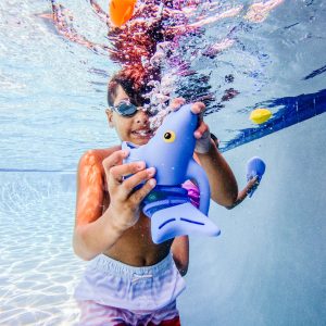 Speed like a hungry shark to gobble up tasty fish! Just grab onto the handle of a Spark Shark net and swim through the pool to scoop up the fishy sinkers. The set comes with two shark nets. six colorful sinkers and lots of play ideas for races. games and more!