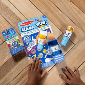 Melissa & Doug Sticker WOW!™ is a whole new way to play with stickers! Let the adorable. collectible Atlas the Astronaut stamp. stamp. stamp its way through 24 pages of fun-filled. space-themed counting. matching. and search-and-find activities. The refillable sticker stamper comes pre-loaded with a sticker stack of 300 assorted stickers – with 100 unique designs in every stack. each sticker is a surprise! Plus. this set is bundled with a refill pack of 200 EXTRA surprise stickers (compatible with any Sticker WOW!™ sticker stamper) and an additional mini activity pad for even more Sticker WOW!™ fun. Stickers are not reusable. but are easy to remove if necessary. Fill in the activity pages and use for creative art projects. such as bookmarks. posters. cards. and more. Easy-to-remove stickers and the convenient on-the-go format with built-in sticker stamper storage makes Sticker WOW!™ a great mess-free travel activity. Sticker WOW!™ (patent pending) promotes fine motor skills. encourages creative play. and it’s satisfying. fidget fun!