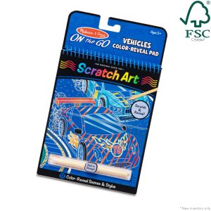 All-inclusive and self-storing. this compact color-reveal Scratch Art book brings the fun anywhere kids may go. With the included wooden stylus. children can etch within the lines to reveal 12 vehicle scenes featuring cars. trucks. trains. and more; by adding patterns and details. they can make each picture uniquely their own! Each set comes with built-in storage for the included stylus. This product is certified by the Forest Stewardship Council. FSC certification ensures that products come from responsibly managed forests that provide environmental. social. and economic benefits. and that forests are protected for future generations. Please note that FSC certification applies to new inventory only (FSC C156584).