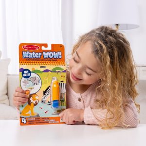 Bring on the fun with this six-pack of exciting and reusable Melissa & Doug Water Wow! activity pads. Each pad (Animals. Vehicles. Alphabet. Numbers. Safari. Under the Sea) includes four reusable Water Wow! boards. Pages in the spiral-bound pads are white when dry. and reveal colors. pictures. and shapes when wet. Let the pages dry to erase. then color with water again and again! Search-and-find activities and fun facts are included with each scene. The chunky-sized water pen (one with each pad) is easy to fill. easy for small hands to grasp. and stores in the activity pad – making these terrific travel toys. party favors. and rainy-day activities!