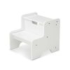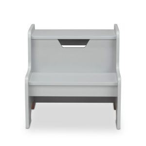 Give kids a leg up with this sturdy wooden two-step step stool! With a cool gray finish to fit with any home décor (also available in natural. white. and espresso). this 14-inch-high stool is great for helping kids up to 100 pounds reach books and toys in the playroom. climb into bed at night. brush their teeth and wash their hands at the bathroom sink. or help out in the kitchen at mealtimes! Easy to assemble with a Phillips head screwdriver. not included.